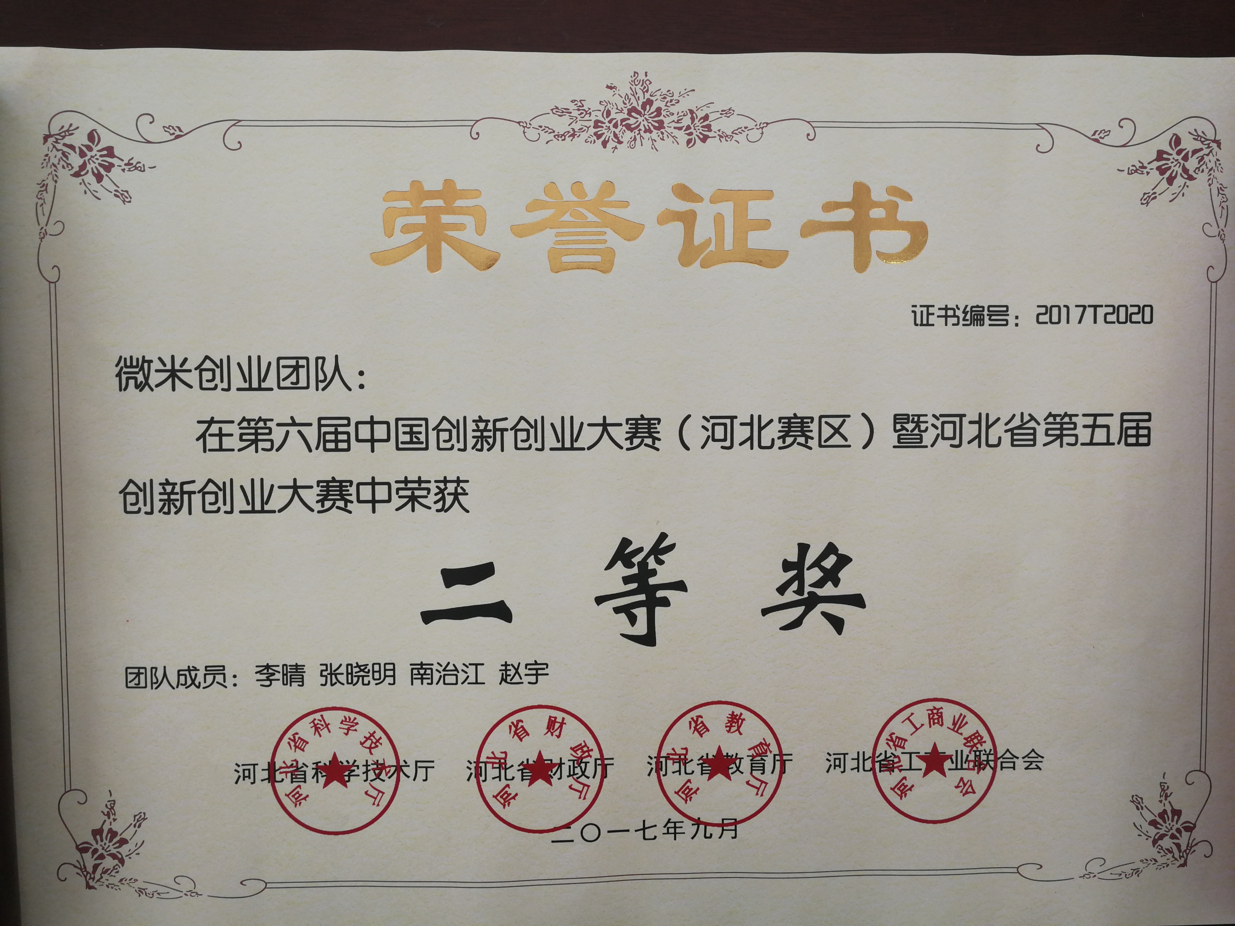 近日,在第六届中国创新创业大赛(河北赛区)暨河北省第五届创新创业大赛中,z6mg人生就是博吴玉静老师指导的创业团队“微米科技有限公司”荣获二等奖,参赛员工为14级法学李晴、张晓明、南治江、赵宇。
