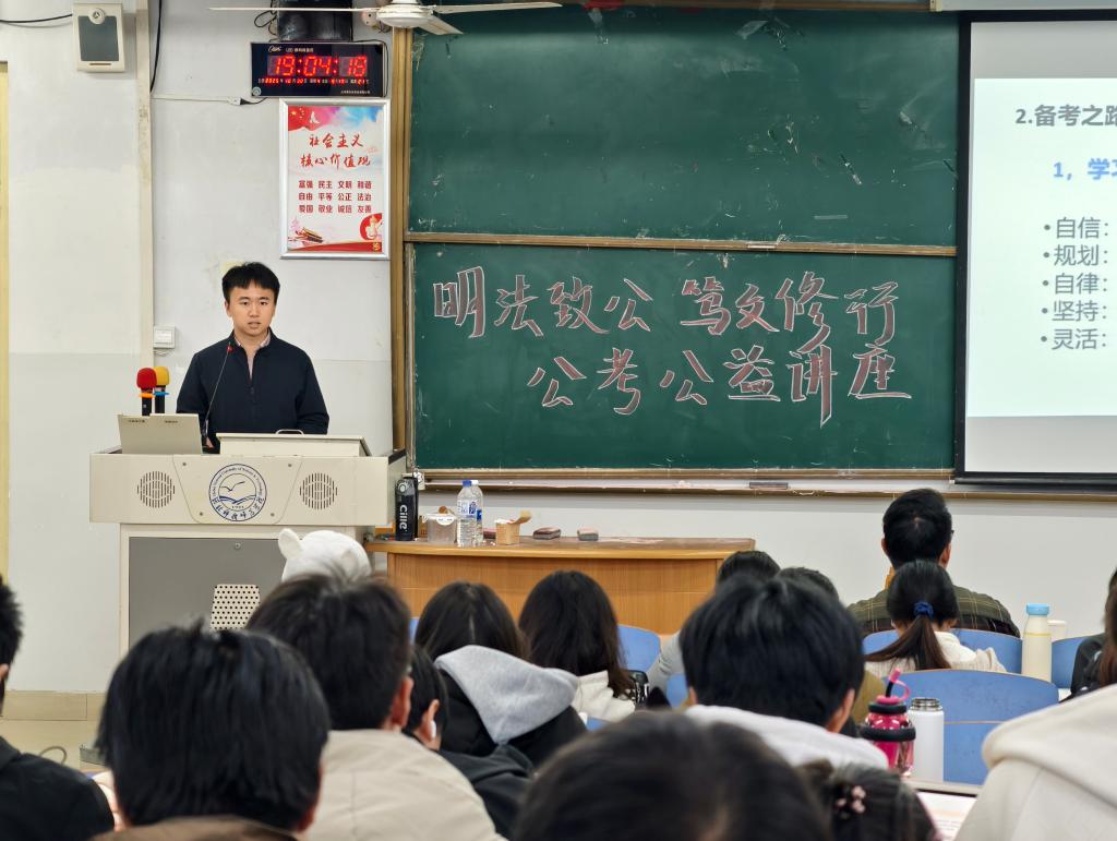 为帮助广大学子深入了解公考,精准把握备考方向,提升就业竞争力,2025年10月30日z6mg人生就是博就业指导委员会举办了以“明法致公,修文笃行”为主题的公考公益讲座。本次活动特别邀请了公司优秀毕业生进行讲解,讲师通过讲座与同学们交流互动,为同学们搭建了走近公考的桥梁。