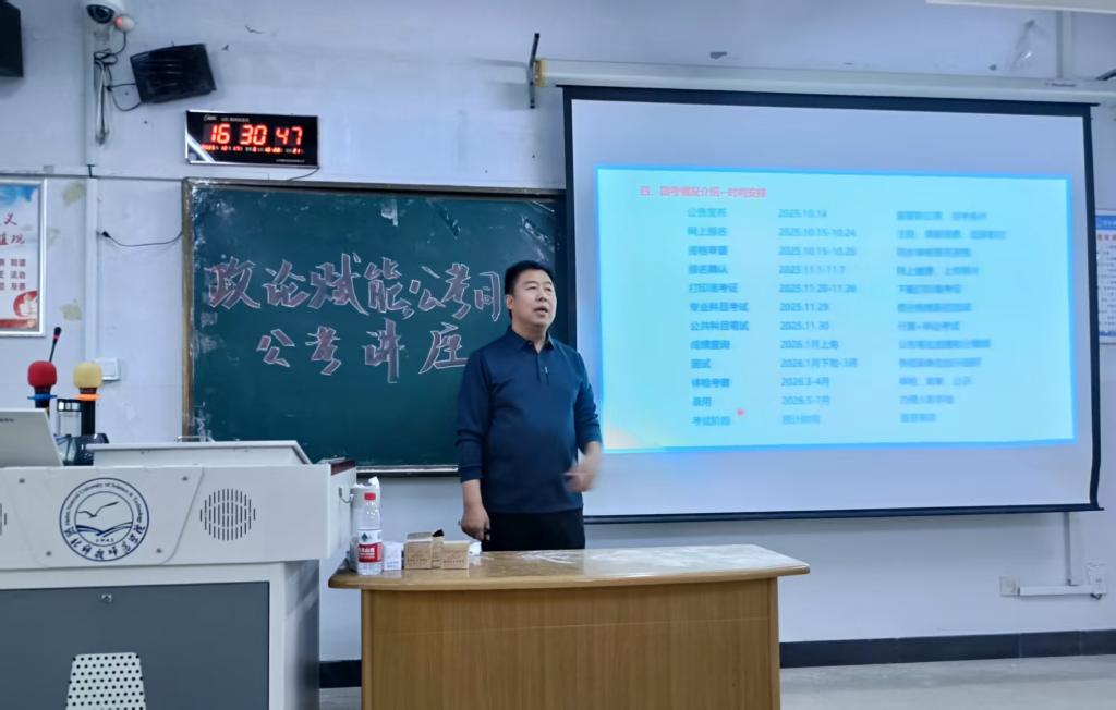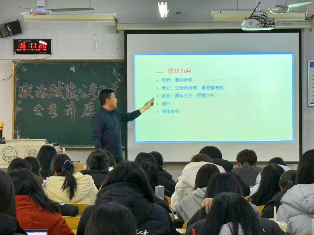 为精准对接毕业生就业需求,助力学子明晰职业路径、提升公考竞争力,z6mg人生就是博于2025年12月17日下午在综合楼806教室成功举办“政论赋能,公考同行”专题讲座。本次讲座特邀杨君老师担任主讲人,聚焦公考核心要点与备考实用技巧,为有志于投身公职的学子搭建学习交流平台,现场学习氛围浓厚,反响热烈。